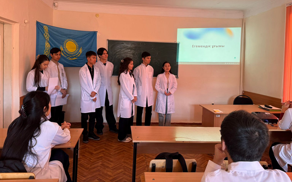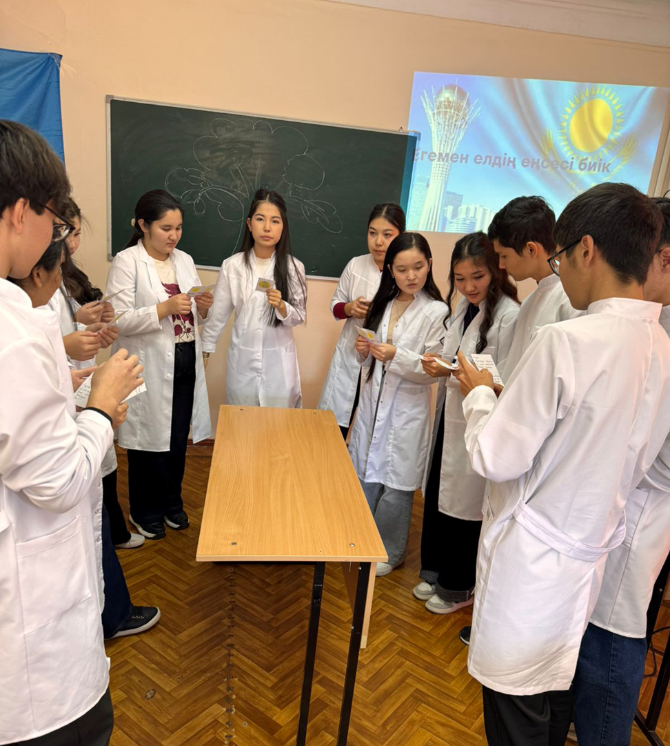 October 25 is Republic Day! On October 23, the event "Егемен елдің еңсесі биік” was held under the supervision of Gulayim Bayzhanovna Alipbekova, a teacher from the Department of History of Kazakhstan and Social-Political Sciences, with the group 1-003 of the "Medicine" specialty.