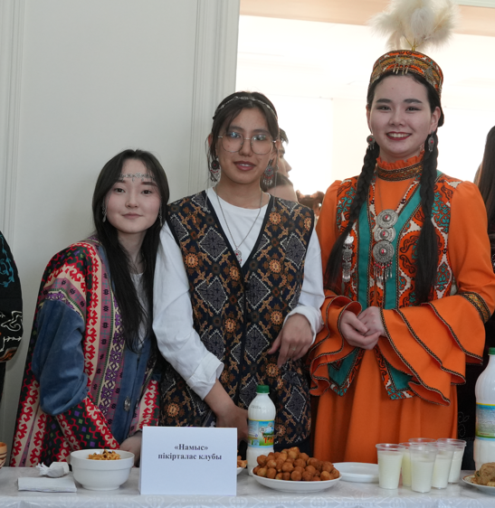 In celebration of the Nauryz holiday, it has been a tradition to hold the "Baursak Fiesta" competition among student clubs.Each club prepared baursaks, and talked about their peculiarities.