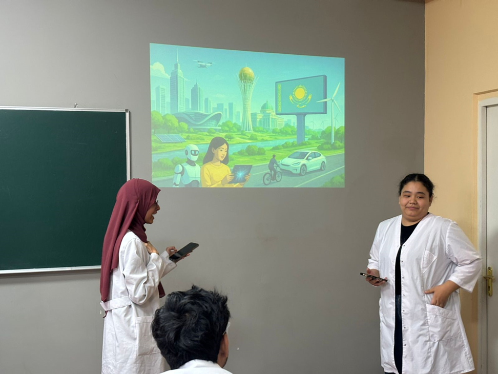 On October 24, 2025, the Department of History of Kazakhstan and Social-Political Sciences hosted a significant event to mark the Republic Day of Kazakhstan, which is celebrated annually on October 25th. This event brought together second-year students from the International Medical Faculty's 2004 group 2004 and first-year students from the MPC-1004 group, demonstrating spirit of unity and love for their homeland.The event began with a video that narrated the history of the holiday, highlighting its significance in shaping modern Kazakhstani state. Following this, participants were challenged with an engaging quiz conducted in English and Kazakh, testing their knowledge on traditions, culture, and achievements of our country. The quiz enhanced understanding of national identity and pride in their state.
