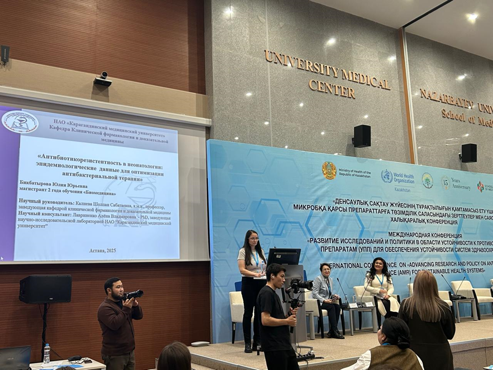 Кафедра меңгерушісі, медицина ғылымдарының кандидаты, профессор Шолпан Сабатаевна Калиева – ДДСҰ-ның AWaRe жүйесі бойынша Техникалық консультативтік тобының сарапшысы және ҚР Клиникалық фармакологтар мен фармацевтер қауымдастығының Вице-президенті – 2025 жылдың 20 қарашасында Назарбаев Университетінің Медицина мектебінде өткен «Денсаулық сақтау жүйелерінің тұрақтылығын қамтамасыз ету үшін антимикробтық препараттарға тұрақтылық саласындағы зерттеулер мен саясатты дамыту» атты халықаралық конференцияда модератор ретінде сөз сөйледі. «АМР саласындағы ғылымның дамуына жас зерттеушілердің қосқан үлесі» секциясында кафедра магистранты Бикбатырова Юлия Юрьевна баяндамамен сөз сөйледі.