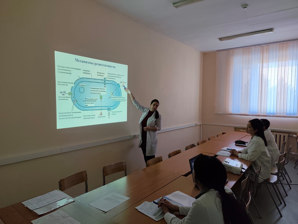 Сонымен қатар кафедра қызметкерлері – Пивень Л.И., Ким Т.В., Николаева Т.Л., Сыздикова Ж.В., Сабекова О.Ж., Симохина Н.А., Бикбатырова Ю.Ю., Ахмедия Р.Е., Аят Ж.Б., Сагадатова Т.К., Тусенова М.Т., Салибекова Ч.З. – студенттермен ақпараттық әңгімелесулер өткізді. Әңгімелесулер антибиотикке төзімділік мәселесі туралы хабардарлықты арттыруға және бактерияға қарсы дәрілерді жауапты қолданудың маңыздылығын түсіндіруге бағытталды. Әңгімелесулерге «Медицина», «Жалпы медицина», «Педиатрия», «Фармация» мамандықтарының студенттері, сондай-ақ Халықаралық медицина факультеттің студенттері қатысты.