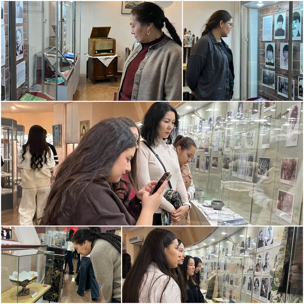 Мұражай экспозициясында тұтқын әйелдердің тағдырын көрсететін фотосуреттер, лагердегі тар барақтар, темір керуеттер, киім-кешек, күнделіктер мен хаттар, әртүрлі қолөнер бұйымдары қойылған. Студенттер сол заттарға үңіле қарап, әр заттың артында бір адамның өмірі, үміті, арманы, қайғысы жатқанын сезінді. Экскурсоводтар әр экспонаттың тарихын түсіндіріп, сол дәуірдің жалпы саяси ахуалы, қуғын-сүргін механизмдері және адамдарға қалай жала жабылғаны туралы да жан-жақты мәлімет берді. Көптеген студенттер алған әсерлерімен бөлісіп, мұндай зұлматтың қайталанбауы үшін халықтың санасында тарихи жадтың сақталуы маңызды екендігін айтты.