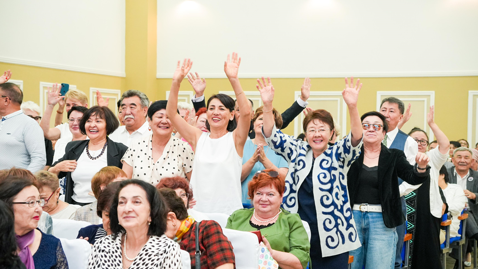 Кездесу естелік суреттермен және бүкіл зал қосылып шырқаған «Бақыт тілейміз сіздерге» әнімен аяқталды.