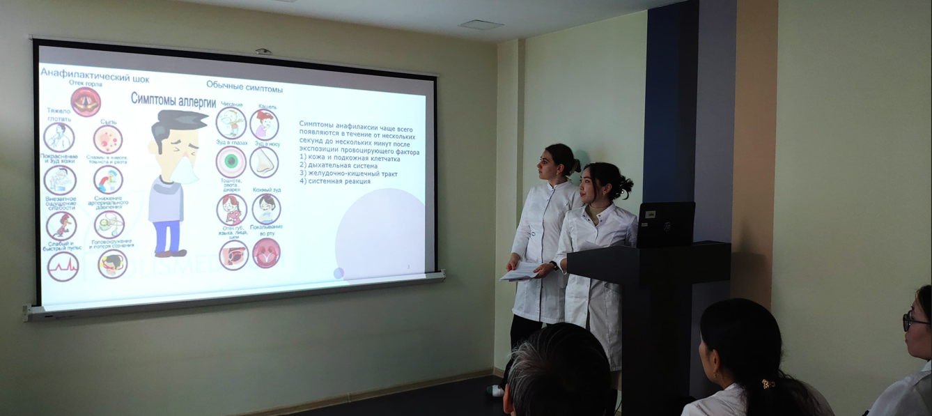 Еуропалық Аллергология және Клиникалық Иммунология Академиясы 21 қарашаны анафилаксия туралы түсінікті арттыру күні деп жариялады. Осы жаһандық бастама аясында 2024 жылғы 28 қарашада ішкі аурулар кафедрасында «Дәрілік гиперсезімталдық» тақырыбында дөңгелек үстел ұйымдастырылды. «Аллергология-иммунология (ересектер мен балалар)» пәні бойынша оқытушылардың жетекшілігімен, білім беру бағдарламасының жетекшісі О.Ю. Дедова, ассистент-профессор М.Р. Измайлович, профессор Л.Ш. Сексенова, оқытушы А.В. Кошкарбаева, сондай-ақ акушерлік, гинекология және перинатология кафедрасының ассистент-профессоры А.В. Скворцова және аллергология-иммунология саласындағы резидент-дәрігерлердің қатысуымен дөңгелек үстелді ұйымдастырылды. Іс-шараға 2-037, 3-034, 6-024, 6-021 курс студенттері, сондай-ақ Ресейдің Рязань қаласынан академиялық ұтқырлық бағдарламасы бойынша оқитын 4-025 топ студенттері қатысты.