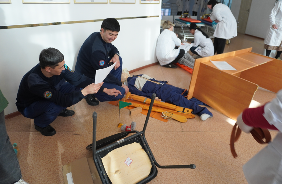 2025 жылдың 7 ақпанында Симуляциялық және білім беру технологиялар орталығында 1-3 жыл оқитын резиденттердің арасында «Кідіріссіз жағдай аумағы» байқауы ұйымдастырылып өткізілді. Сценарий бойынша резиденттер тұрмыстық газдың жарылу себебінен болған апаттық жағдайда, яғни ғимарат құлаған кезде үйінді астында қалған зардап шеккен науқастарға көмек көрсетуі керек.