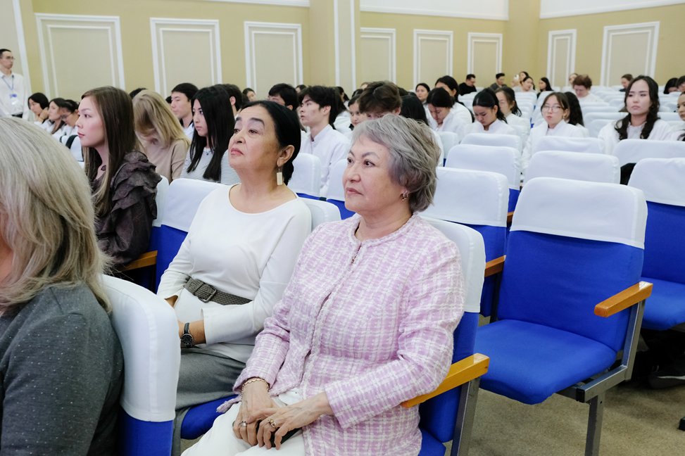 Қарағанды медицина университетінің ректоры, медицина ғылымдарының докторы, профессор Көшерова Бақыт Нұрғалиқызы ұжымды мерекемен құттықтап, оқу орнының дамуына қосқан үлесі үшін алғысын білдірді. Өз сөзінде Республика күні – еліміздің егемендігі мен тәуелсіздігінің негізін айқындайтын, мемлекеттік маңызы зор тарихи күн екенін ерекше атап өтті.
