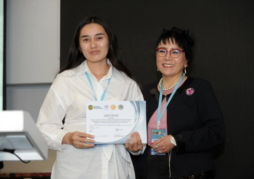 Конференция аясында Жас ғалымдар мектебінің секциясы ұйымдастырылып, МБМ магистранттары Батаа Ботагөз бен Жексенбаева Альбина келесі тақырыптарда баяндамалар жасады: «Церебральды инсульттен кейінгі оңалтудың проприоцептивті нейробұлшық еттік фасилитацияны өзін-өзі басқару әдістерімен біріктірудің тиімділігі», «Кинезотерапияны өзін-өзі басқару әдістерімен біріктіре отырып, жүру дағдысын қалпына келтіру».