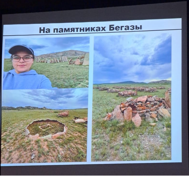 Вот и сегодня студентка 1 курса специальности Медико – профилактическое дело 1 курса Савриева Сабина выступила с рассказом об исторических местах Ташкента и Самарканда, где она побывала с экскурсиями; в презентации по данной теме представила свои фото памятников Средневековья. Студентка 4 курса специальности «Медицина» Саульян Карина поделилась с присутствующими на заседании студентами 1 курса (разных специальностей) и преподавателями кафедры, пришедшими на заседание, своими фото и видео о поездке нашего кружка в мае 2024 г. в горы Кызыарай к памятникам эпохи бронзы – каменным мавзолеям Бегазы. Карина рассказала о необыкновенных ощущениях, которые она испытала, «прикоснувшись» к нашей тысячелетней истории!