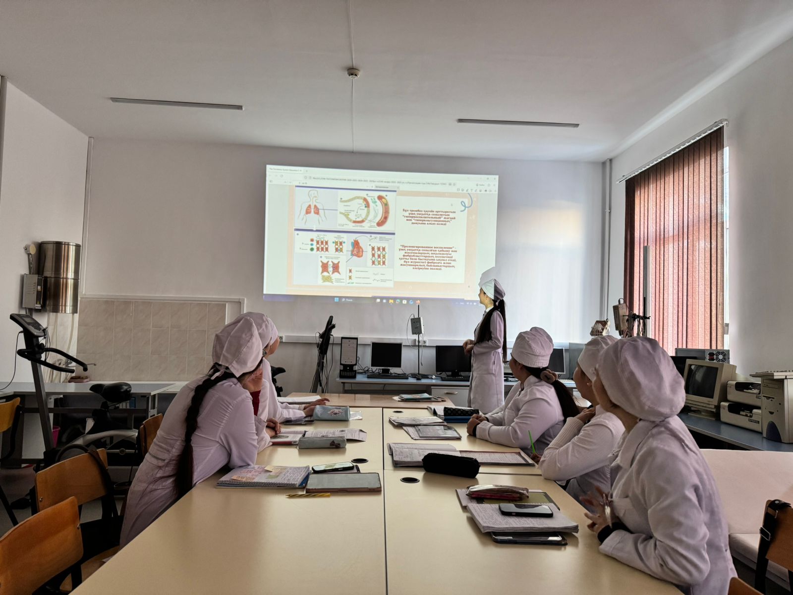 Формирование здорового образа жизни было выделено как один из ключевых аспектов воспитательной работы со студентами. Было подчеркнуто, что распространённость заболеваний дыхательной, сердечно-сосудистой, кровеносной и эндокринной систем среди молодёжи делает профилактическую деятельность особенно значимой. В ходе урока детально рассматривались факторы риска, их негативное влияние на организм, меры профилактики и принципы ранней диагностики. Студенты также ознакомились с современными методами исследований и мониторинга, применяемыми в профилактических и диагностических целях.