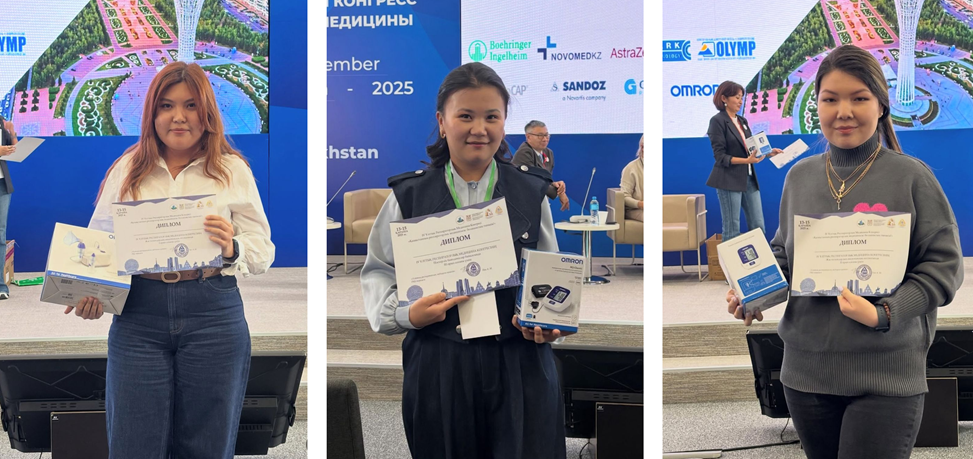 В конкурсе постерных докладов резиденты-пульмонологи А.Б. Сексенбаева, Д.С. Бекенова и И.В. Сорокин представили коллективную работу, которая была удостоена 3 места.