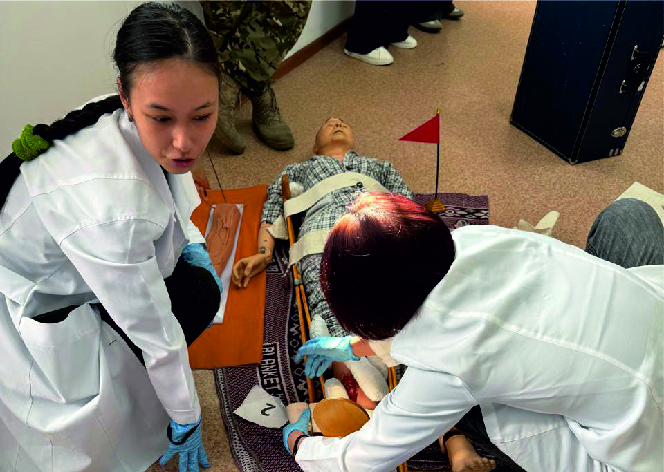 3 апреля 2026 года в Центре симуляционных и образовательных технологий НАО «Карагандинский медицинский университет» прошел конкурс «Территория неотложных состояний» среди резидентов 1-3 года обучения с участием студентов выпускного курса обучения ЧУ «Темиртауского высшего медицинского колледжа». В конкурсе приняли участие 5 команд. Участники конкурса оказывали помощь пострадавшим в критических ситуациях при симулированном сценарии «Землетрясение». В структуре сценария были представлены следующие неотложные состояния: оказание неотложной помощи при закрытой черепно-мозговой травме, клинической смерти у ребенка, оказание помощи пострадавшему с синдромом длительного сдавления, носовом кровотечении, травматическом шоке и других легких травмах.В качестве членов жюри выступили представители практического здравоохранения, а также представители кафедр: Волков Дмитрий Яковлевич, старший преподаватель военной кафедры НАО КМУ, Политов Александр Юрьевич, подполковник медицинской службы в отставке, преподаватель военной кафедры НАО КМУ, Овезнепесов Ташли Непесович, преподаватель «Темиртауского высшего медицинского колледжа», фельдшер высшей категории МЧС по Карагандинской области, Керимбеков Төлеген Икрамович, ассистент, докторант кафедры хирургических болезней, Еремичева Галина Георгиевна, профессор кафедры педиатрии и неонатологии НАО КМУ, врач педиатр высшей квалификационной категории. По итогам конкурса был проведен детальный дебрифинг, победители конкурса награждены дипломами.