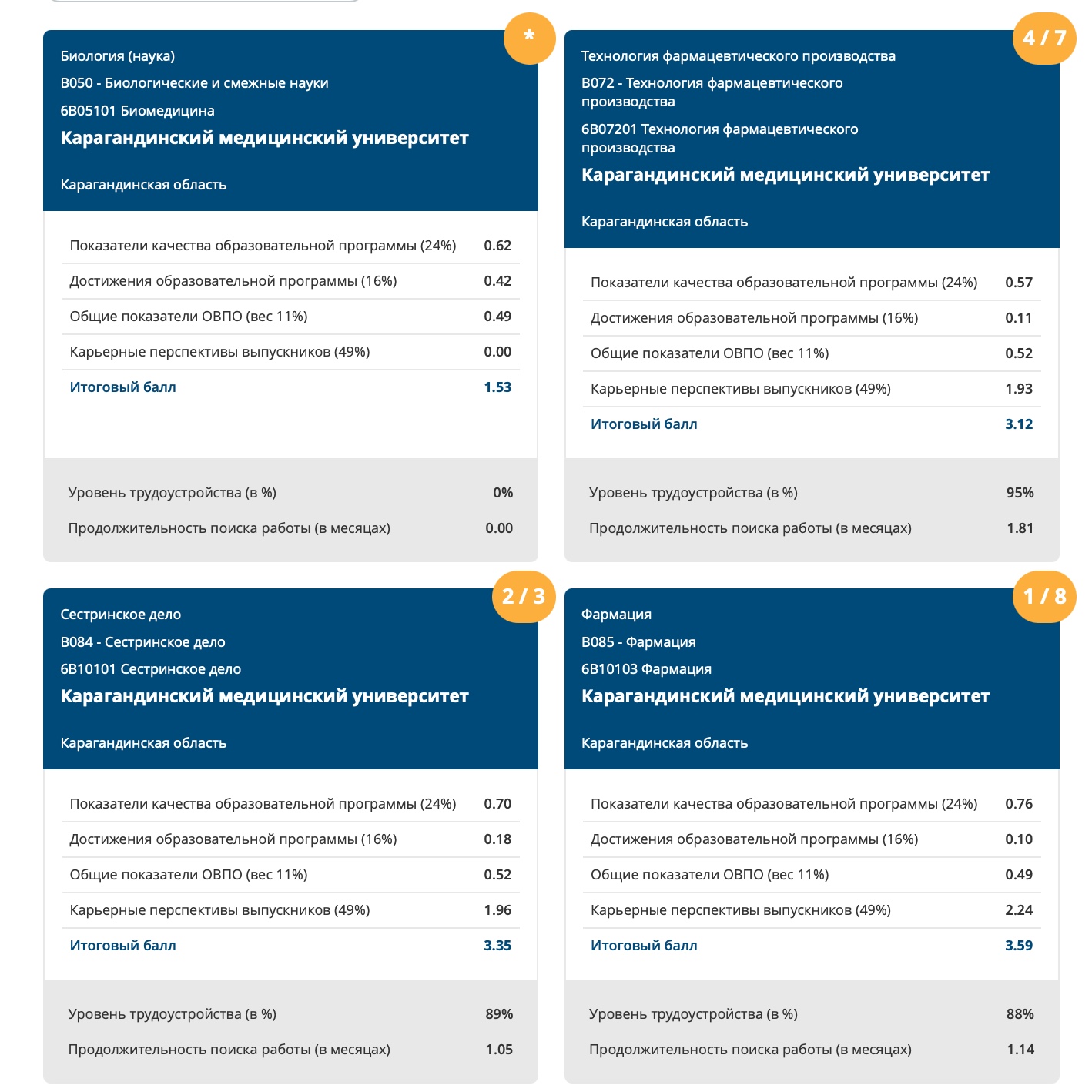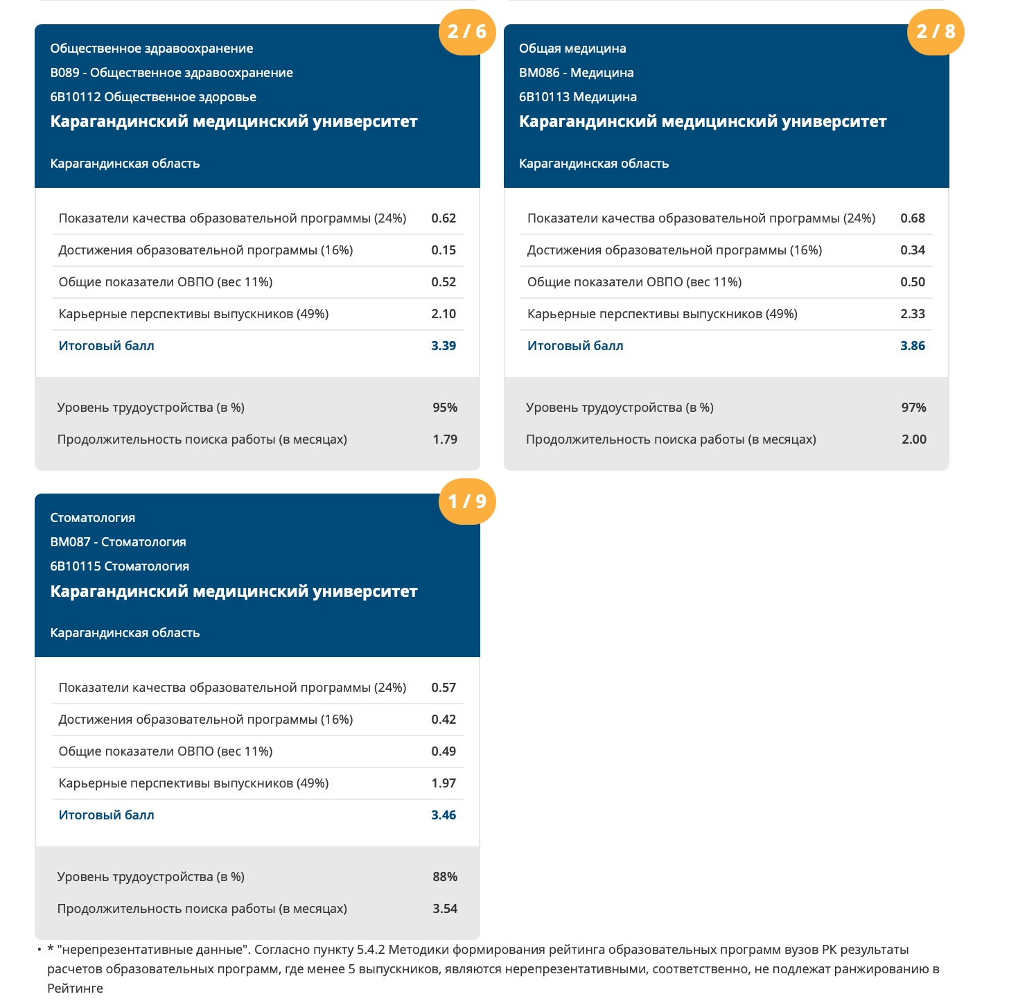 Карагандинский медицинский университет принял участие в национальном рейтинге образовательных программ и показал достойные результаты сразу по нескольким направлениям подготовки: