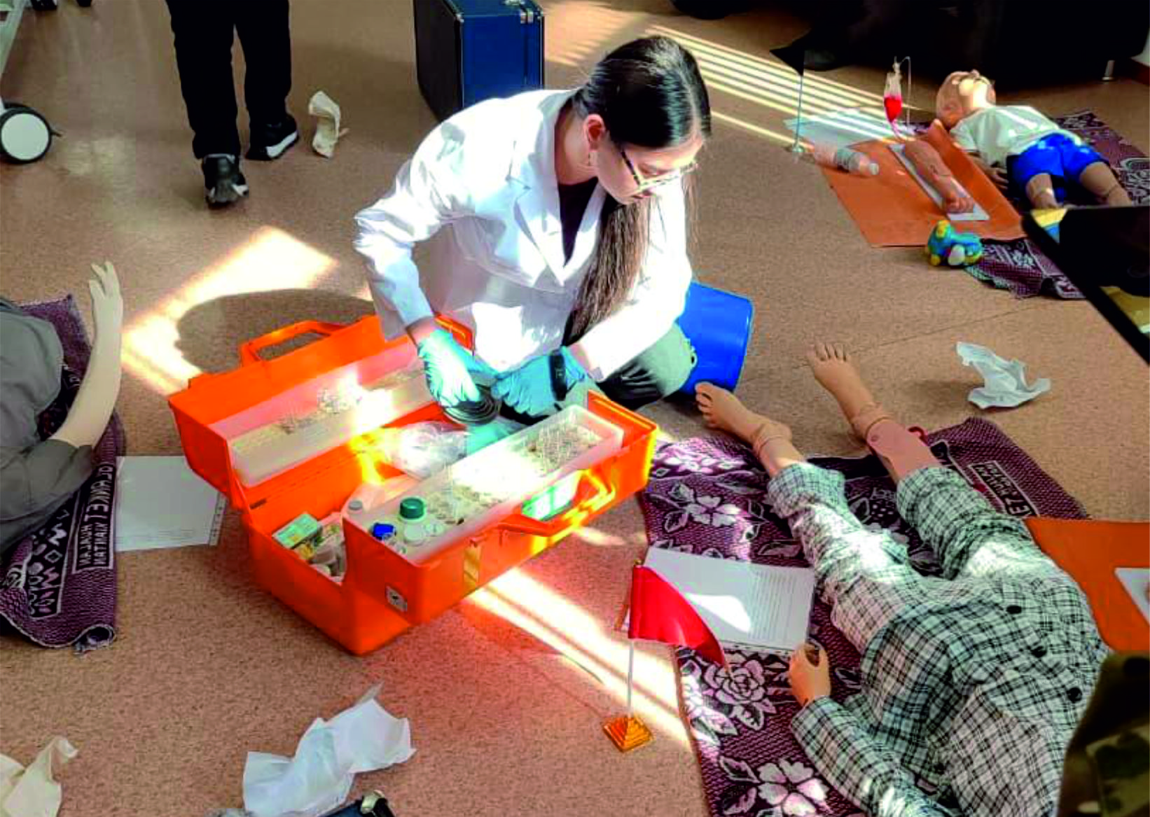3 апреля 2026 года в Центре симуляционных и образовательных технологий НАО «Карагандинский медицинский университет» прошел конкурс «Территория неотложных состояний» среди резидентов 1-3 года обучения с участием студентов выпускного курса обучения ЧУ «Темиртауского высшего медицинского колледжа». В конкурсе приняли участие 5 команд. Участники конкурса оказывали помощь пострадавшим в критических ситуациях при симулированном сценарии «Землетрясение». В структуре сценария были представлены следующие неотложные состояния: оказание неотложной помощи при закрытой черепно-мозговой травме, клинической смерти у ребенка, оказание помощи пострадавшему с синдромом длительного сдавления, носовом кровотечении, травматическом шоке и других легких травмах.В качестве членов жюри выступили представители практического здравоохранения, а также представители кафедр: Волков Дмитрий Яковлевич, старший преподаватель военной кафедры НАО КМУ, Политов Александр Юрьевич, подполковник медицинской службы в отставке, преподаватель военной кафедры НАО КМУ, Овезнепесов Ташли Непесович, преподаватель «Темиртауского высшего медицинского колледжа», фельдшер высшей категории МЧС по Карагандинской области, Керимбеков Төлеген Икрамович, ассистент, докторант кафедры хирургических болезней, Еремичева Галина Георгиевна, профессор кафедры педиатрии и неонатологии НАО КМУ, врач педиатр высшей квалификационной категории. По итогам конкурса был проведен детальный дебрифинг, победители конкурса награждены дипломами.